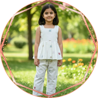 ✨ Top Elegant cream sleeveless peplum top with soft pleats Decorated with delicate multi-colour leaf embroidery Made from smooth and breathable fabric for all-day comfort ✨ Bottoms Matching cream straight-fit pants with multicolour embroidery Elasticated waistband ensures a secure and comfortable fit Light-weight and easy to move in for active kids 🎀 Style & Fit Traditional yet trendy ethnic co-ord set Comfortable and stylish design...