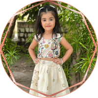 Top (Blouse): Elegant cream blouse with hand-painted lotus floral motifs Cap sleeves add a delicate charm Comfortable and lightweight for little ones ✨ Lehenga Skirt: Flowing cream base with vibrant pink lotus and leafy green detailing along the border Pleated full-flare silhouette for a graceful and playful twirl Made with soft, breathable fabric for all-day comfort 🎀 Style & Fit: Ethnic yet trendy design for...