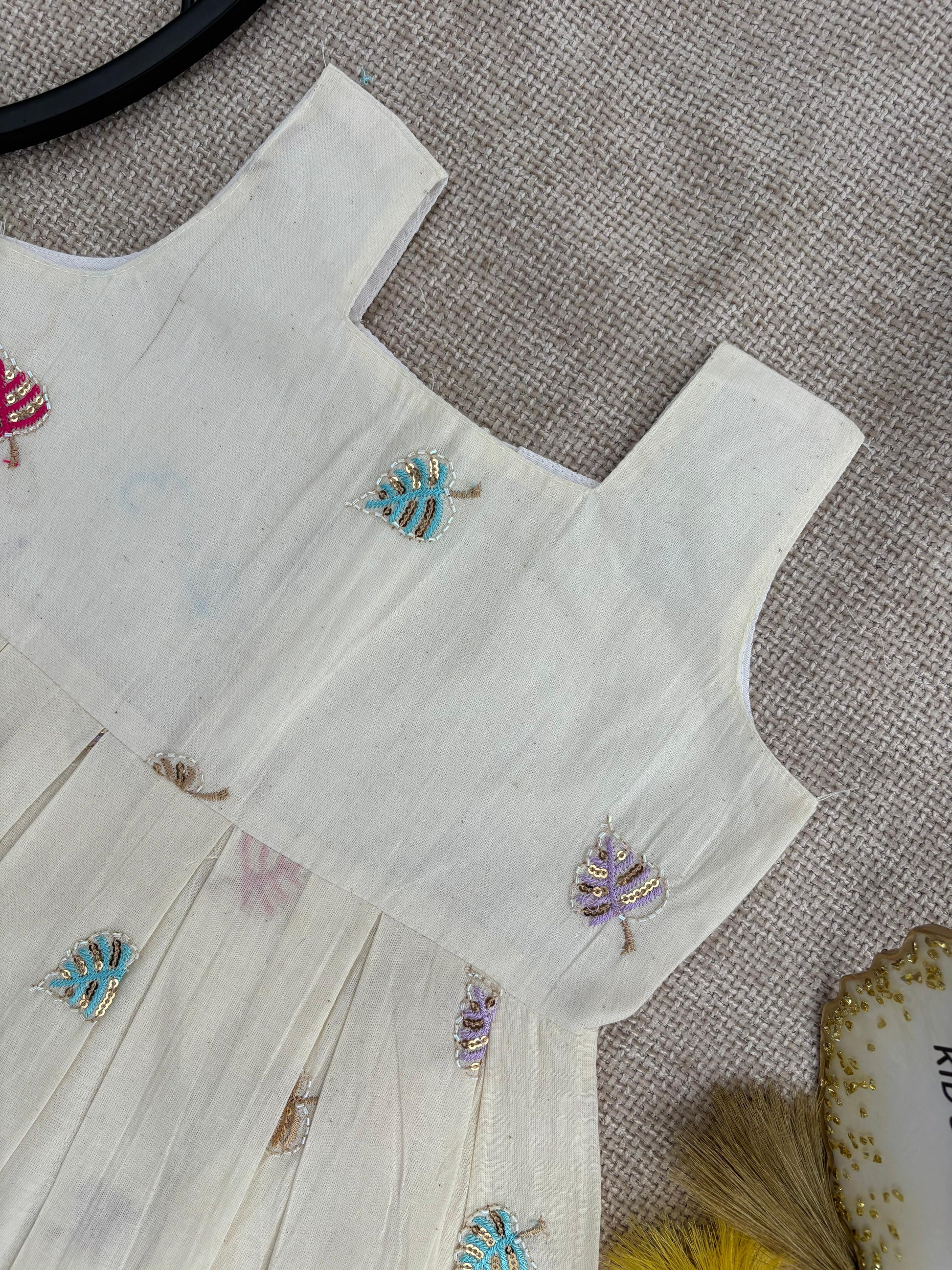 • Decorated with delicate multi-colour leaf embroidery