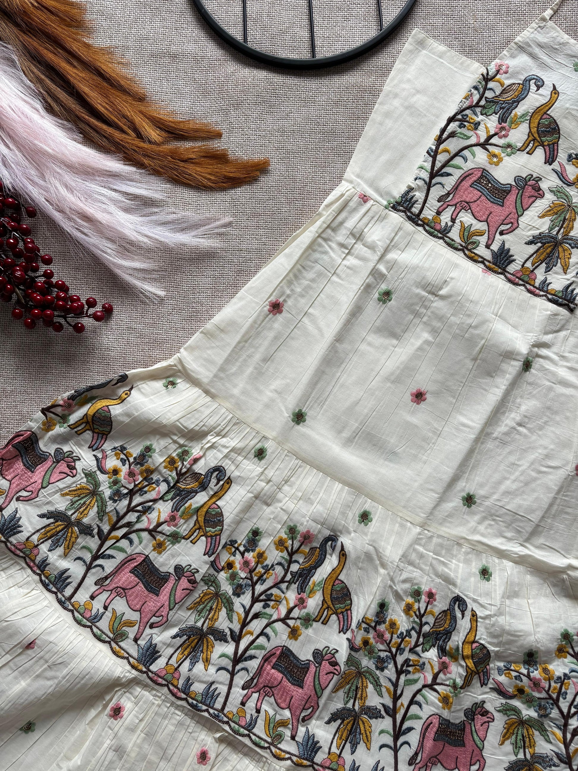• Pure Cotton Embroidery Work 3 Layers Flare and Front side yoke attached with dori and back zip attached with designer stitching work finishing allover